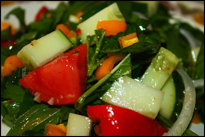 To quote Tom Petty, “the waiting is the hardest part.” It really is, isn’t it. You see things growing and hanging on their plants but they are not ready to pick…and then all at once everything seems to ripen. Today was my first real haul from my teeny front yard garden. All of the ingredients for the above salad–except the dressing, which was simply virgin olive oil and balsamic vinegar–were grown there adjacent to the sidewalk (pavements, to my friends across the pond). I ate it for dinner two minutes after picking, twenty feet from where it grew, and while it while it was still warm from the sun…tomato, sweet pepper, hot pepper, cucumber, basil, Italian Parsley, and sweet basil (fresh strawberries for dessert). The first tomato I picked, I did as I usually do each year, and ate it where it grew. Geeze o’ man was this stuff good. This time of year is payoff time for a vegetable gardener. For me, growing food makes way more sense than a front lawn. I’m just sayin’…
