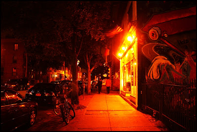 I’m not sure what area of the world you are reading this but in Western New York it has been hot and humid this past week. In a word…balmy. I actually have the weekend off of work but have been doing some rehab on my house and spent the better part of the day yesterday and today squatting on rafters next to an uninsulated roof. It was, to say the least, very sauna-like temperatures (only a lot dirtier). Anyhow, this evening it cooled a bit and I felt I needed to get out and get some air. So I went for a short walk around my neighborhood, snapped a few photos, and then stopped for a couple beers in an air conditioned bar. I used a long shutter speed for these photos and it enhanced the red-orange hue of the night-time lighting, which I thought captured the balminess well. Click any photo for a slightly larger view.