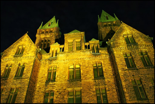 H.H. Richardson Complex, or more commonly known as the old section of the Buffalo Psychiatric Center. Straight out of an Alfred Hitchcock movie, right? It’s actually not as creepy looking in real life…more impressive than creepy (ok, at night it still is pretty creepy). After years of vacancy and neglect it’s finally being refurbished again (possibly as a hotel). The newly renovated grounds are lovely. Anyhow, as I rode past it tonight the lighting was just right so I had to take a few photos. Click either for a slightly larger view.