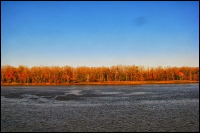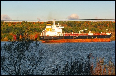 So I took the train home from NYC today. I’ve taken this train numerous times in my life and I still enjoy it. I’ve also posted pictures of this trip on other occasions, but not since last year. I was not going to post any–or even take any photos for that matter–until the train got rolling. Then I saw the autumn colors and couldn’t help myself…a constant moving panorama before my eyes as I relaxed and watched NY State go by. The route this particular train takes, as you may already know, begins in NYC and hugs the Hudson River up to Albany, the state capitol. There, after changing engines, it turns left and follows the Erie Canal to Buffalo, then crossing the border at Niagara Falls, and continuing on to Toronto. One of my favorites of these photos is the first one above, which is one of the first I shot this morning (the photos are in chronological order). It was about 7:30am and the sun had only been up for about an hour. As the train traveled north on the Hudson there was still the full moon hanging in the sky, just above a cargo ship. It was, I thought, pretty as a picture, so I took a photo of it. Click any for a slightly larger view.