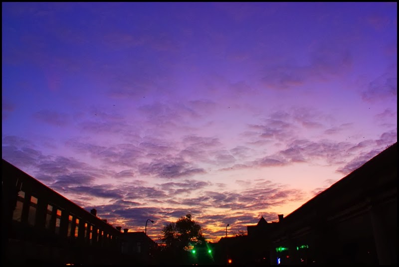 I had to be at work a little early this morning. It was cold–the first really cold morning of the year–probably about 30F, and not a breeze in the air. It felt good; crisp. And then as I rounded the corner and faced east this was the view in front of me as the sun rose. Beautiful. I stopped in the middle of the street to snap a photo. I was, and still am, so grateful to be on a bike in the open air. It was a great way to start the day.