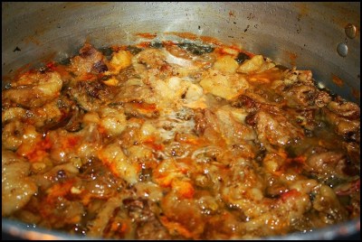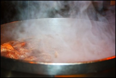 Bring the pot to a boil then lower it to a simmer. Then simmer, simmer, simmer. It’ll take a few hours.