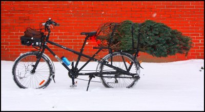 Things That can be Carried on a Bike (#548 & #549) Posted byJoeDecember 13, 2013December 15, 2013Posted inbicycles as therapy, bicycles as transportation, Car Free, Christmas, Cold, Things that can be carried on a bike, urban simplicity, Winter, Yuba MundoTags:bicycles as therapy, bicycles as transportation, Car Free, Christmas, Cold, Things that can be carried on a bike, urban simplicity, Winter, Yuba Mundo #548…Crates and boxes of food on their way to a food pantry. #549…A Christmas Tree. Urban Simplicity. Share this: Click to share on Facebook (Opens in new window) Facebook Click to share on X (Opens in new window) X Like Loading... Related