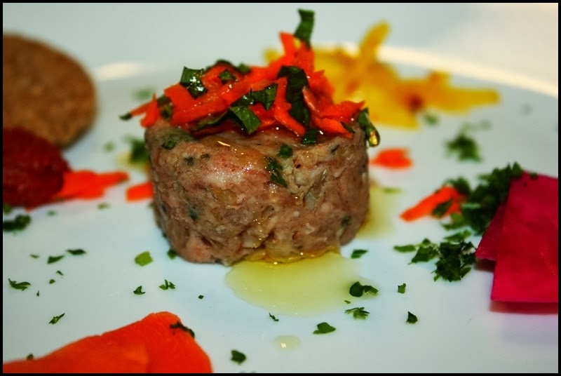 Ok, so to some this may be a bit odd…raw meat. Yup, that’s what one version of this famous Lebanese dish is; raw lamb and bulgar wheat (pictured above). In it’s raw form it is referred to as kibbeh nayeh; think of it as a sort of Middle Eastern steak tartare. When I was a kid we had this every weekend at my grandmothers house, but on a large platter not fancy individual servings as pictured (this was a test meal for an upcoming dinner I’ll e serving…sort of haute cuisine libanaise). It’s funny to think that I never really thought of it as raw meat back then…it was simply kibbeh. We would layer it in flatbread that was fresh from the oven with vegetables and dripping with olive oil (yum!). Pictured above it is garnished with pickled vegetables and whole grain sesame crackers . After the first day then you can cook it in any number of ways—baked, stuffed, fried, patties, etc–but one of my favorites is simply to roll it into meatballs, bake them and eat them on a salad with yogurt and vinaigrette. Now this is making me hungry. Anyhow, the basic recipe is below. If you’d like to see other ways in which to cook/use this recipe, including pictures of it being made, click here. If you’d like other Lebanese inspired recipes, click here.