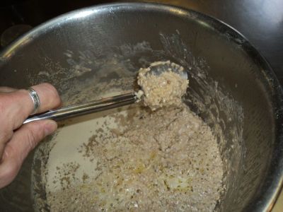 As with any recipe that I publish I like to tell people that these are mere suggestions not blueprints…thus my recipes often change from one time to the next (this is why the two recipes listed in previous posts vary). What’s different about this recipe (I guess I’m always seeking improvement) is that I increased the amount of beans and grains by about 10 percent, and in addition to 1/3 of the total flour content being organic whole wheat spelt flour, I also incorporated whole spelt berries.
