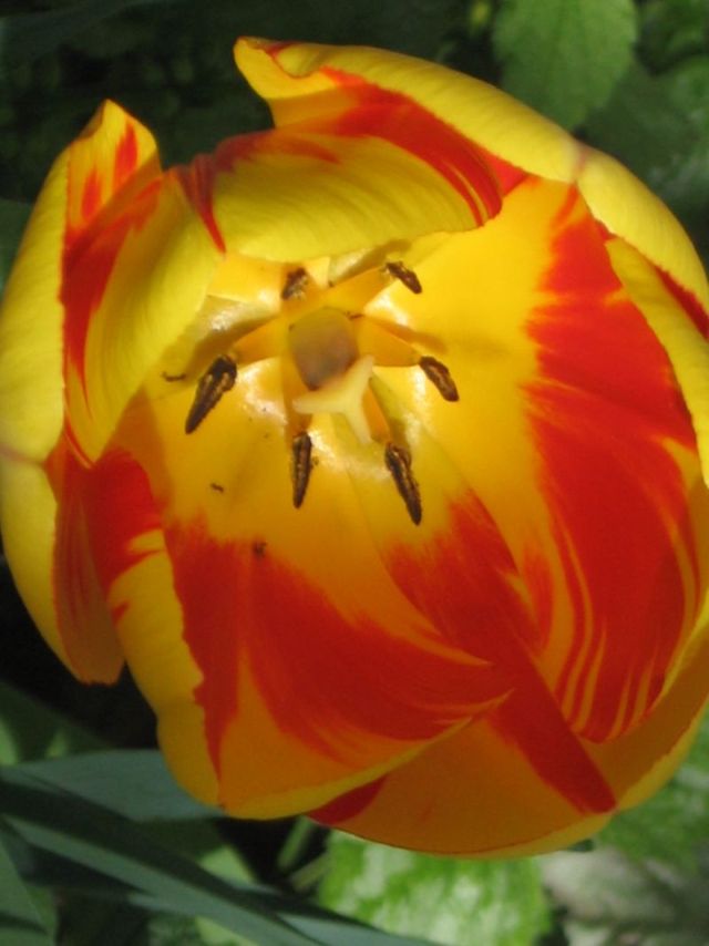 These flowers are in the front yard next door to mine; they grow next to the hitching post where I lock up my bikes (click here to see it last winter). Yesterday these flowers were closed, not tightly but definitely not open like they are in the photos. Anyhow, after a crazy-busy day at work today I arrived home and bent to lock my bike when I saw them…they’re beauty literally stopped me in my tracks. Though it was chilly they still reached for the sun like it was their main mission (and it may be). With the backdrop of the not-yet-lushness of summer, they seemed almost illuminated…like they were lit up; plugged in.