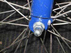So there I was…coasting down a slight incline this evening. I had just left the gym and felt refreshed; had a couple slices of pizza for dinner on the rear rack. I noticed the front break is rubbing against the rim. Not unusual, I thought; the caliper just needs some adjusting. So I lean forward as I coasted and pushed it aside a little. A minute later it did it again. When I came to a stop light and inspected a little closer I realized it wasn’t the break at all, but the rim, more specifically the bolt attaching it to the fork. Yup, both bolts were so loose that I could have easily lifted the tire off the bike…and I coasting down a hill like this (on a sixty pound bike).