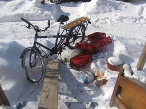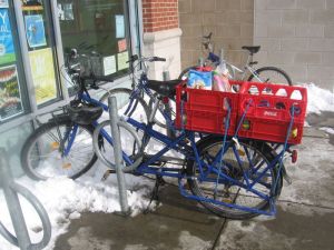 Things That Can Be Carried On A Bike (#129), A Bike-Friendly Business, And How Things Are Not Always A Bed Of Roses On A Cargo Bike In The Winter