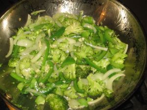 Preheat an oven to 375F. Combine the eggs, Parmesan, milk, red pepper, basil, and salt in a small bowl; whisk together and set aside. Heat the olive oil in an ovenproof skillet. Add the onion, green pepper, and broccoli; saute the vegetables for a couple minutes, or until they just begin to brown. Add the garlic and saute another minute. Pour the egg mixture over the vegetables then top it with the shredded cheddar. Place the skillet in the preheated oven for about 5-10 minutes, or until the eggs are just set.