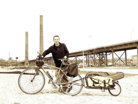 >I just came across the website of Peter Mulvey (click here). He’s a Wisconsin based musician who rides his bike with his gear in tow to (some of) his shows. He calls it his “Look Ma, No Gasoline” tour (click here). It’s refreshing to see this…and his music is pretty good as well (see video).