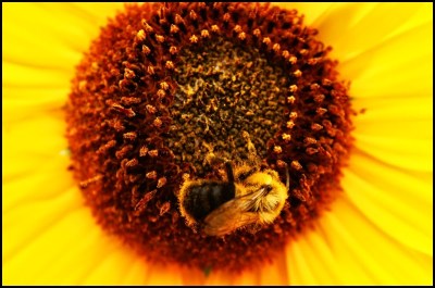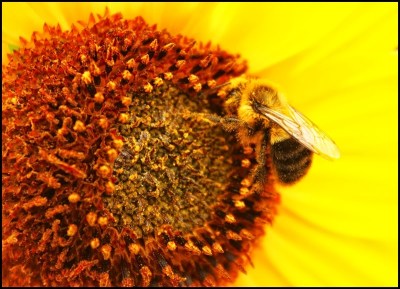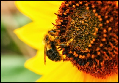 A Flower and a Pollen-Covered Bee Hard at Work…