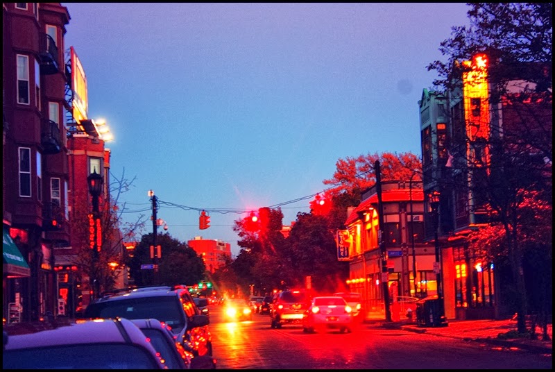 So a couple things. Firstly, as I’ve mentioned in previous posts, Western New York has been experiencing an incredibly beautiful autumn. Each day is nicer than the next. And the evening’s skies are simply spectacular. Because it has been getting dark earlier, as I leave the health club in the evening it is just before dusk, which is my favorite part of the day for light. And each night when I leave I am not sure what to expect. Tonight when I looked south and east the sky was both pink and blue and looking west it was blue in some points but at others a burnt orange. Incredible. At one point, while I was waiting at a traffic signal it was almost too overwhelming for me…tears literally welled in my eyes (no kidding). This is also the time of year that crows begin to take over the city. It’s an incredible sight. So at one point I coasted into a parking lot to watch them fly from the roof of church and adjoining buildings to tree tops and back again. Crows of course remember faces, and I wondered if they remembered mine from last year when I took their photos (I hope they thought I was friendly). Anyhow here’s a few pictures from my short ride home this evening. Click any for a larger view.