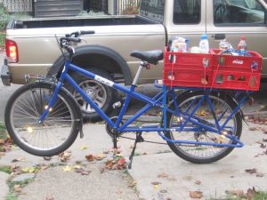 In the event that you haven’t come across it yet, there’s an interesting and quirky little quarterly paper called The Practical Pedal, which as you may have guessed is about practical bicycling (Click here for their website). There’s another paper devoted to urban cycling called Momentum (which is a little larger and has more content, click here for their website). I’ve often thought how great it would be to have print editions of either of these magazines in Western New York (the closest place I’ve been able to get Momentum is Toronto, and The Practical Pedal is nowhere near this area). At any rate I emailed both magazines (separately) suggesting they send me some and I would deliver and distribute them for free (by bike, of course). I’ve emailed back and forth with an editor from Momentum a few times…seems I need a commitment from the local community before they can send them (i.e. advertisement). Then I emailed Wiley over at The Practical Pedal…he emailed me back the next day saying, “sure, sounds great.” He had a bundle (100 copies, I believe) sent via ground freight….that’s them sitting on the Yuba. (If you’re reading this Wiley you can see that the Yuba can handle many more bundles than one.) I’m planning on dropping them around town this weekend. My plan is to take them to places in Allentown and the Elmwood Village. If you’re a Buffalonian reading this and have a specific drop off suggestion let me know.