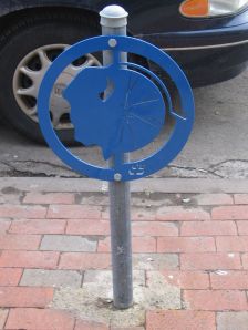 Here’s a photo of one of the bike racks that are replacing parking meters around the city. I had mentioned them in an earlier post comparing them to the bike racks in Toronto. If you’d like to read that post, click here. I am really impressed by them; I think it’s one of the better (and simpler) things our city is doing.