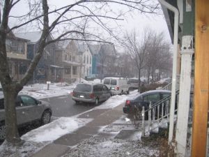 My final note in this post is on the weather, specifically Buffalo weather. When I left the house this afternoon around 12:30pm it was bright and sunny, albeit a little chilly. Shortly thereafter it became somewhat overcast, and it stayed like that for most of the rest of the afternoon. Then, rather suddenly, I noticed it becoming darker. Then a few flakes appeared. And then it was as if angels cut open a cloud full of snowflakes…almost instantly it was snowing to where the flakes blurred my vision (I really do need to get a set of ski goggles). We only got an inch or two of snow before it stopped (which is not even worth mentioning in Buffalo), but it happened so quickly that it took me by surprise…lake effect snow, I suppose. In a car I may have found this annoying, but on a bike, being out in the elements–being part of the elements–I found it truly beautiful.