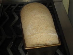 Day off and as usual I’m tempted to cook/bake…even in the midst of attempting to accomplish weekly errands…resurrected my sourdough starter…started feeding it two days ago. Made a dough this morning, and baked it this evening. The rear of my house is cold (unless the stove is on), something like 50F, so I left the dough to rise slowly for 9 hours before baking it. The bread is a little dense (not unlike me at times) but it is delicious. The flavor character is incredible. It contains no commercial yeast…just flour, water, salt, and starter (9-year old starter). Here it is in photos: the initial dough, then at three hours, then at about 8, then fully baked.