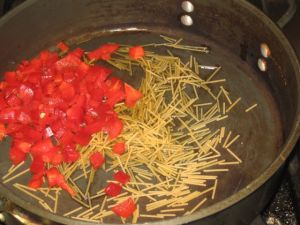 Another “clean out the ‘fridge” for dinner night. I made this vegetable pasta dish, and here’s how it goes: