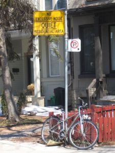 This bike was on a quiet street just north of the Kensington Market. There’s nothing too notable about the bike other than the sign that it is locked to (click on the picture if you can’t read it). I wish I had one of those in front of my house.