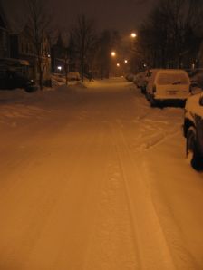 I had a book group to attend and had to stop at my son’s mother’s house prior. The entire round trip was only a few miles but it felt like about ten. There were points (side streets mostly) where I had to walk the bike because the snow was simply too deep to pedal through, and there were other times were I’d see a patch of ice and have to use my patented stand-and-coast method, lest I fall. But it was a blast. I felt a real sense of accomplishment, and got some exercise at the same time. The biggest problem actually came when I left the book group to go home (after leaving the bike parked in knee-deep snow for two hours). The cable leading from the shifter to the derailleur must have had water built up in it and froze solid. This is the first time that this has ever happened. For the first half mile or so I was stuck in first gear, but with some effort I was able to free it. If that is the worst of my problems I have no problems at all.
