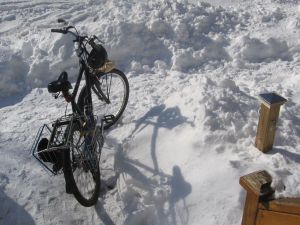 do during/after a storm). Later I drove to the JCC for a swim and a steam, and had a chance to push someone else out who was stuck. All the while I kept thinking that I would be having more fun if I were on a bike, so that’s just what I did…went home, plowed my truck into a snowbank for safe keeping, and hopped on my bike.