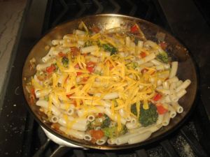 Another “clean out the ‘fridge” for dinner night. I made this vegetable pasta dish, and here’s how it goes: