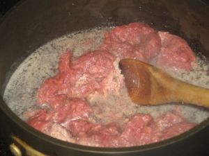 up of water. Return the pan to the burner and bring it to a boil. Mash the beef with a wooden spoon, while scraping any crispy pieces from the bottom of the pan (the crispy bits are pure flavor). Simmer the beef until the water reduces and it starts to fry in it’s own fat (which was rendered out while boiling). Continue to cook the meat until it begins to brown, scraping the bottom with the wooden spoon all the while. Transfer the meat to a plate, set it aside, but leave a small amount of fat in the pan. Remove the pan from the heat.