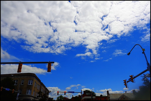 Cool photo, right? I took it while on a walk this evening. It looks sort of Star Wars-esque, doesn’t it? You’d never know that I took it while in the heart of the city. Anyhow, I had gone for a long walk tonight to clear my head (walked the length of the Elmwood Village here in Buffalo, from Allen to Forest and back again) and twice (yes twice) was almost struck by a car while crossing an intersection while the driver blindly turned while chatting on a cellphone. The first time it was so close that by the time the car stopped I had instinctively put my hand out (as if that would have done anything) and my hand rested on the hood of the car while its bumper pressed against my leg (no joke). There are too many cars on the road and too many people on cellphones while driving. Does every adult American really need a car? Two adults in the house…two cars; five adults in the house…five cars. Does every trip—no matter how long or short—really require a car? There are other forms of transportation. Sorry for the rant, but I had not one but two close calls tonight while I was simply out for a walk on a beautiful summer’s eve. I’ll put down my bullhorn now.