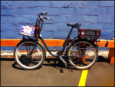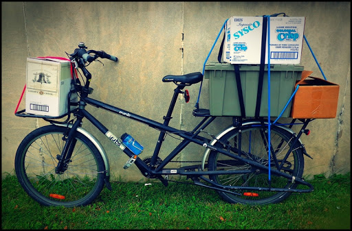 On the bike…a box containing nearly a full sandwich loaf on its way to a local food pantry.