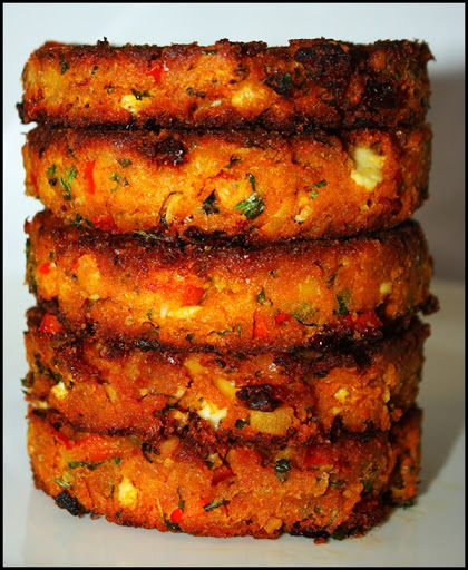 Crispy and super flavorful. So yes, these are as delicious as they look. They are really easy to make, and can be frozen, too. Eat them on a sandwich, place them on a salad, or nibble them straight from the pan…you won’t be sorry if you make this recipe. For a southwestern black bean-cheddar version of these burgers, click here.