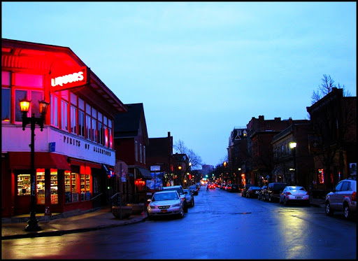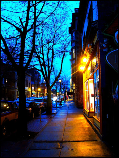 These are two photos of Allen Street, very close to whee I live. I had gone for the short walk in the cold, wet, wind and had a camera with me and snapped a couple photos. What is interesting, I think, are the colors. I’ve often said on this blog–and many of my photos reflect this–that my two favorite times of the day are dusk and dawn (but I’m rarely out of the house to shoot photos at dawn). I’ve always found this time magical, but as a photographer it is even more so. The light is just right; not too dark, the colors spring forth, and (usually) it is still light enough to hold a camera by hand. And interestingly, I just recently found out that there is an actual name for this…the blue hour, or l’heure bleue. It is an accurate description given the soft blue hue these times offer. Anyhow, I just thought I’d share this.
