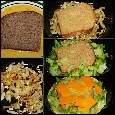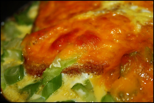 Okay. Firstly, let me explain what this is. And by this I don’t mean classically (in the culinary world) but what it was to me; what it was for my dinner tonight. It was…well…a sort of look-in-the-fridge-and-make-make-something-out-of-it meal. Like much of the east coast we got hit with heavy snow today and I didn’t feel like going shopping after work. My son was out so I only had to cook for myself. So I checked my kitchen and I found some eggs, bread, onions, garlic, cheese, and a few broccoli stems (I ate the florets from them a few night ago). So this is what I made. A strata (culinarily speaking) is a cross between a frittata (or a quiche with the crust on the inside) and a sort of savory French toast. Interestingly, the French word for French toast is “pain perdu,” or lost bread, indicating the bread is stale and cooking it in that manner is a way of reclaiming it (or at least not wasting). And that’s exactly what this was tonight. This was really good and satisfying, and as far as the ingredients the sky really is the limit (but the contents of your fridge are the real limit). Anyhow, this couldn’t have been easier to make, and it hit the spot…thought I’d share the recipe.
