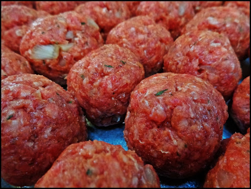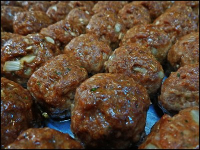 Kibbeh and Kafta are two Lebanese meat recipes that are somewhat similar yet at the same time a bit different. While they are both often made with lamb they are equally good when made with beef (as the recipe pictured is). And the recipe can take on many forms, this is just one example. I made this for staff lunch today. If you’d like to read more about what Kibbeh and Kafta are, and how they relate to me, read this post (which contains more photos, a variation on this recipe, and links). At any rate, this is really easy to make a super delicious.