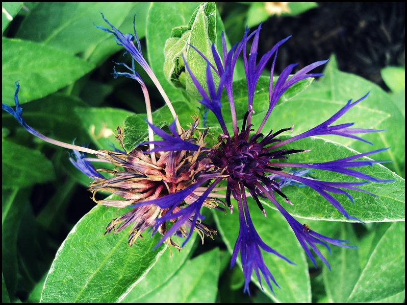 Well it finally rained today. A crazy heavy downpour with thunder and lightening. I stood on the porch and watched it for a while. It lasted only about an hour. The rain is so infrequent this summer it seemed really special. I wished it would rain all day. It’s not very often I hope for rain (my least favorite element to ride a bike in) but geeze o’ man did we need it. Anyhow, after it stopped I went out to the garden to pick food for dinner. Everything had that strange misty hue that only happens after a heavy downpour on a hot and humid day. I grabbed a camera and snapped a few photos and thought I’d share. Click for a larger view.