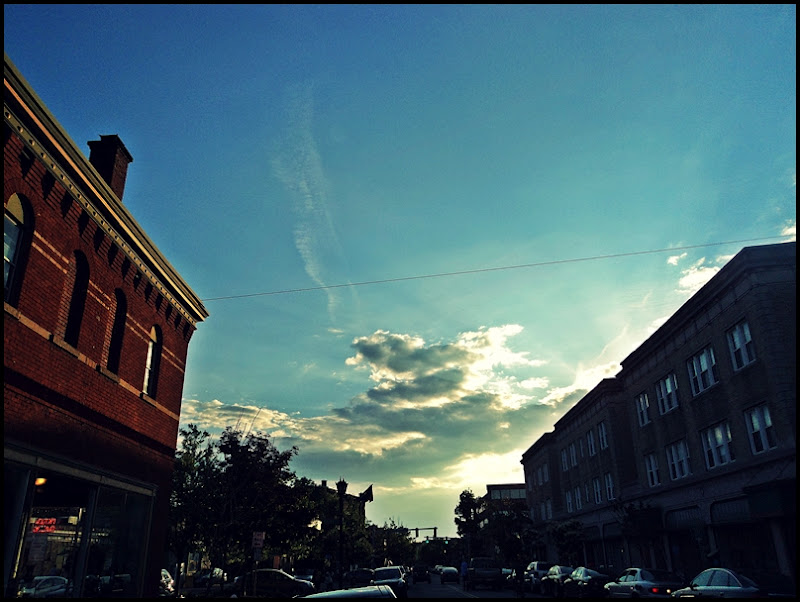 Below is a picture of what I saw over my handlebars as I rode home this evening…what a beautiful evening. I worked a double shift today (Okay, only a shift-and-a-half, but it was spread out over the coarse of the day), nonetheless, I faced a stove in a stuffy kitchen for the better part of the day. And for me being able to get our of work, hop on a bike, and slowly pedal home on such a lovely evening is…well, just a really nice perk. Bikes are more than a recreational toy, and they are certainly more than a means of getting from point A to point B…to me, they can also be a form of therapy, both physical and emotional. I’m just saying…