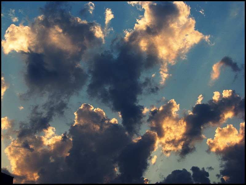 These were taken over two days. The top and bottom were taken today, and the middle three were shot yesterday. What a difference a day makes. Today there was nary a cloud in the sky and yesterday it rained for most of the day. The clouds broke just before sunset yesterday and it had the perfect conditions for color and depth. The way the setting sun shone on the backs of the clouds was amazing. And today brilliantly blue sky, not a cloud. Nice.