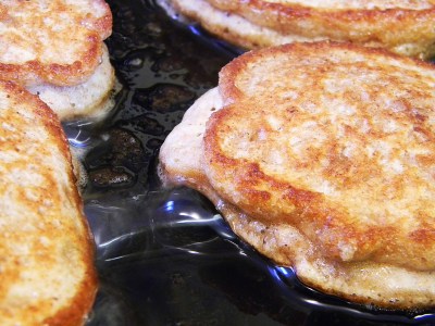 Combine all of the ingredients together and cook in either butter or oil or a combination of both. Top with your favorite fruit and syrup (click here for syrup recipes).
