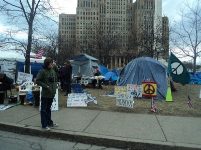 This is in response to the horrific incident that happened at the University of California at Davis very recently (to see videos and photos, click here or here). It is inconceivable to me that this actually happened. Whatever side of the fence you may sit in the Occupy Movement these protesters were non-violent, unarmed, and showing no aggression. Some people, I believe, are truly terrified of non-violent and non-resistant behavior. I also believe that it is ingrained in everyone of us, from pre-birth, that we are all connected and when you hurt one another you hurt each of us…the original truth. I really find it difficult to believe that these police who did this to these students had a good night’s sleep last night. What has attracted me to the Occupy Movement from the very start is that it is a non-violent movement. Needing to clear my head this evening I walked down to the Occupy Buffalo site with my son (that’s him pictured in the lower left). I was glad to see they are still there, and thought to myself as I snapped a few photos what a wonderful scene it was…these people so dedicated to a cause that they are basically living here–in the cold (snow will come soon enough)–and doing it peacefully.