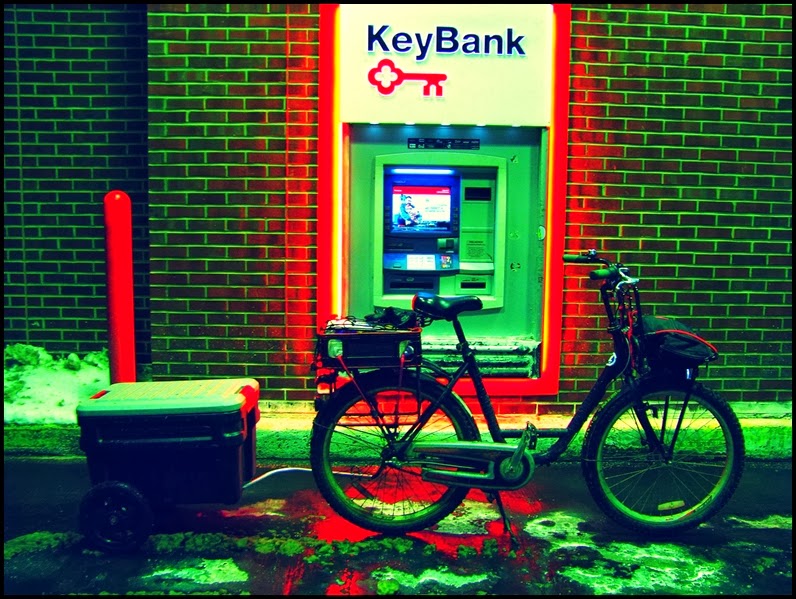 More than $65 worth of groceries and sundries, a gym bag full of wet clothes, and two slices of pizza.