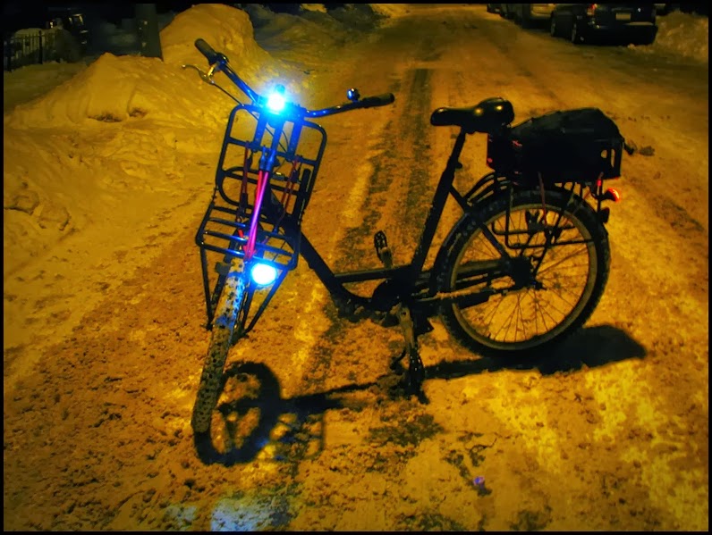 The decision to voluntarily go car free a couple years ago was one of the best decisions I’ve made (and I’ve made more than a few bad ones in my life), so was the decision to invest in good quality steel-studded snow tires at the beginning of this season (I can’t believe it has taken me so long). And after riding in temperatures hovering around 0F/-17.7C for the past few days, riding home from the health club while it was 14F/-10C it actually felt warm. It’s all perspective, I guess. That’s all I have for tonight.