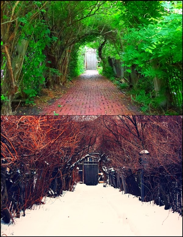 I likely speak for other all-weather cyclists out there when I say that this winter has been challenging on many levels. I pass this hidden little alley many times during my week and have taken multiple photos of it. Today (the bottom photo) it looked especially beautiful as I passed it so I snapped another photo. But it also made me remember photos of summer and it made me pine for warmer weather. Anyhow, I found the top photo that I took last July standing nearly in the same spot, but six months earlier. Summer will come, eventually, I thought. It also made me think of the following quote regarding the 16th century monk, Brother Lawrence (who also happened to be a cook). It is recorded in the classic text, The Practice of the Presence of God, as a series of conversations. I personally find it inspiring (if only we all could have such an epiphany). If you are interested you can download the book for free in many formats here or here. Anyhow, here’s the quote…